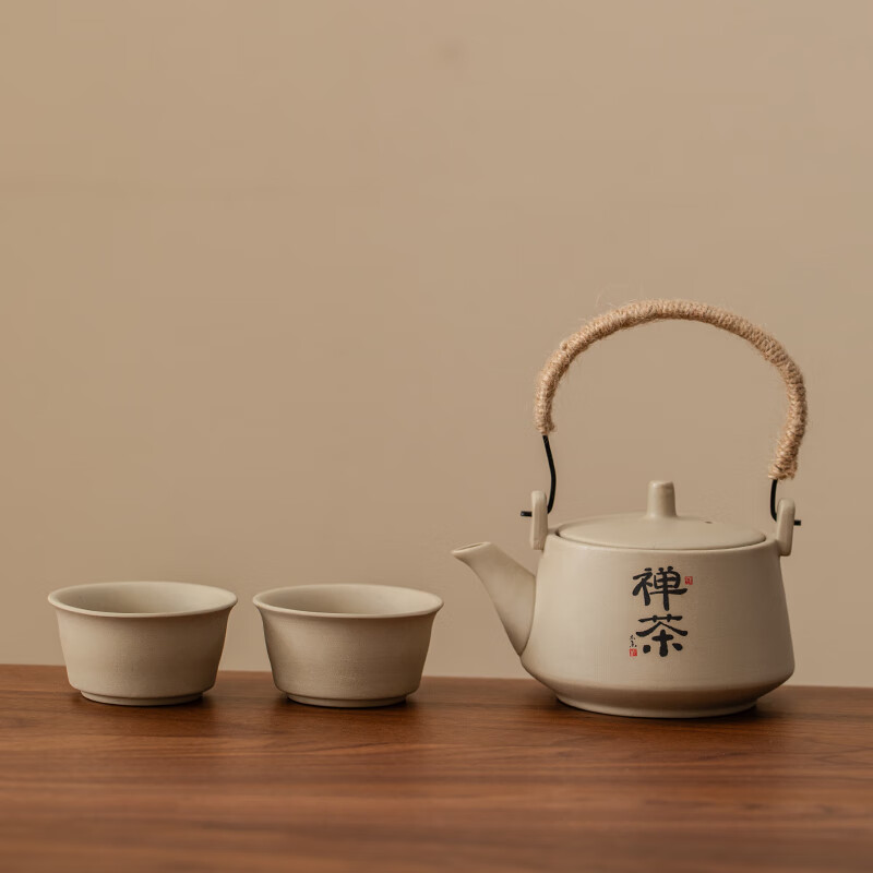 小套装宿舍家用粗陶瓷怀旧功夫茶具套装一壶二杯泡茶提梁壶 一壶二杯