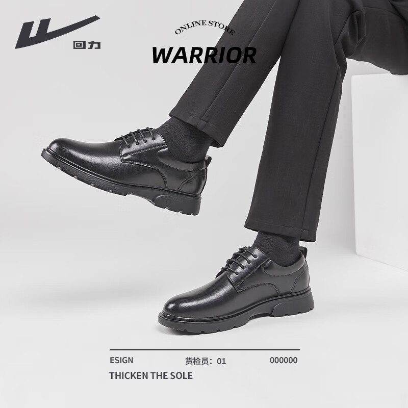 回力皮鞋男秋季英伦风正装商务款男士黑色休闲德比鞋软底结婚新郎鞋子 黑色正装款 44