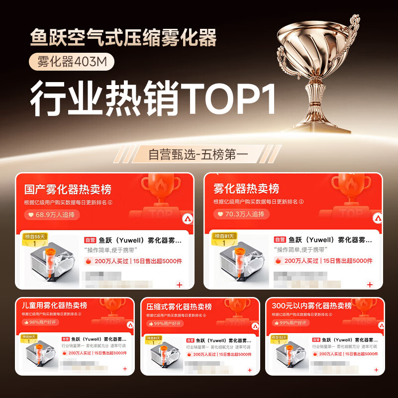 鱼跃(Yuwell)雾化器雾化机儿童成人老人家用医用压缩雾化器403M国家补贴