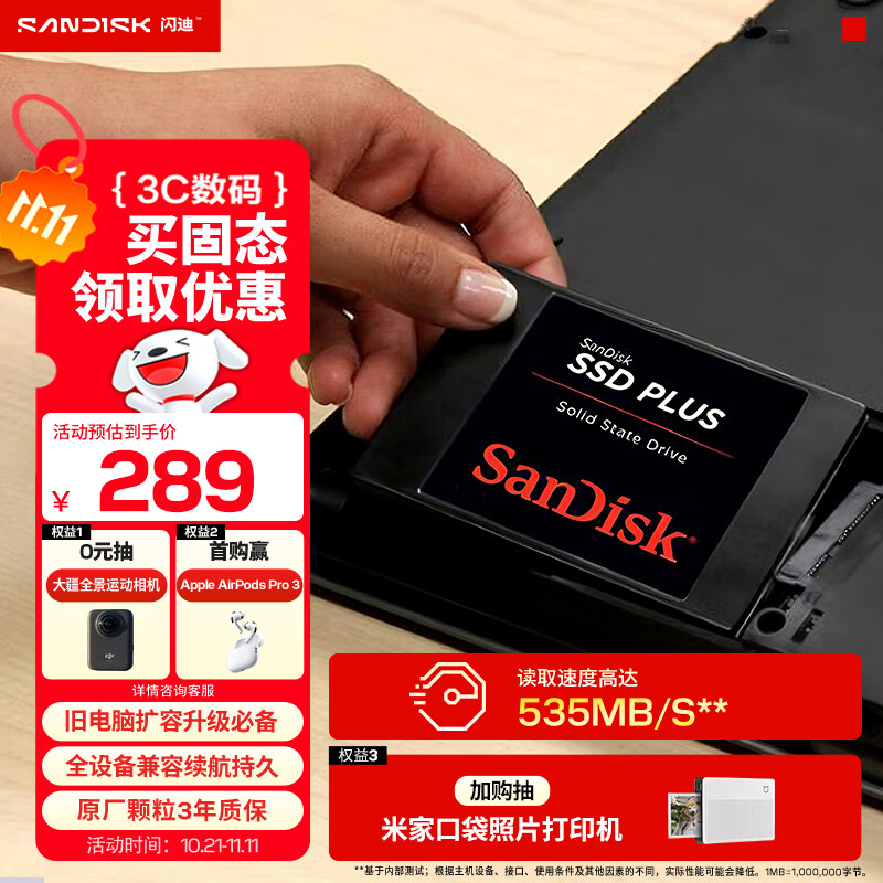 闪迪(SanDisk)480GB SSD固态硬盘535MB/s读速PLUS性能加强版SATA接口2.5英寸TLC颗粒台式机笔记本扩容电脑升级