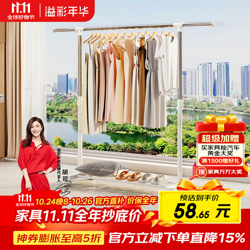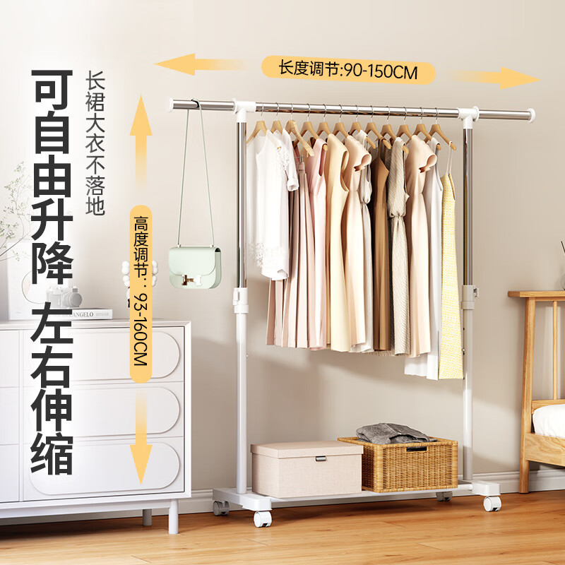 溢彩年华晾衣架落地室内挂衣架卧室凉衣架阳台晒被子单杆可移动晾衣杆081