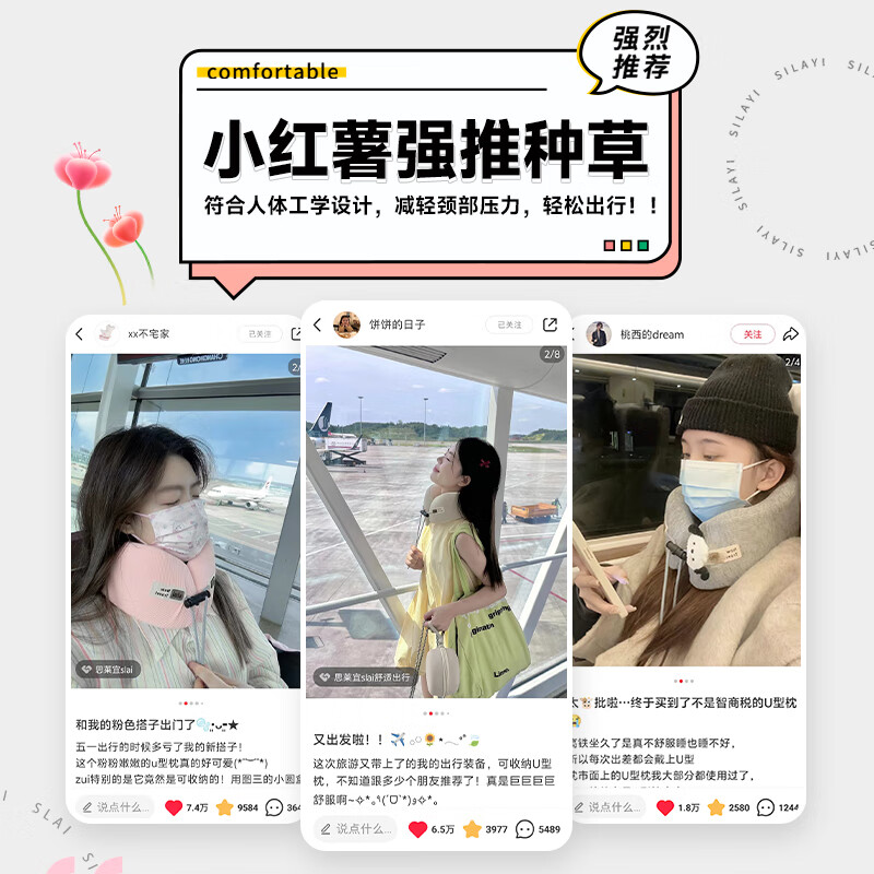 思莱宜u型枕护颈枕便携旅行脖子记忆棉坐车充气U型飞机午睡觉u形头枕