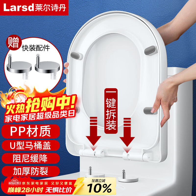 莱尔诗丹马桶盖通用U型加厚坐便器盖子配件老式快拆马桶圈坐厕座便盖U08