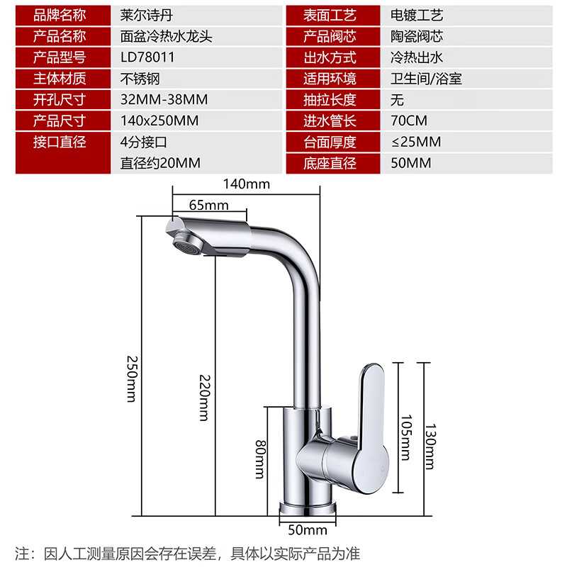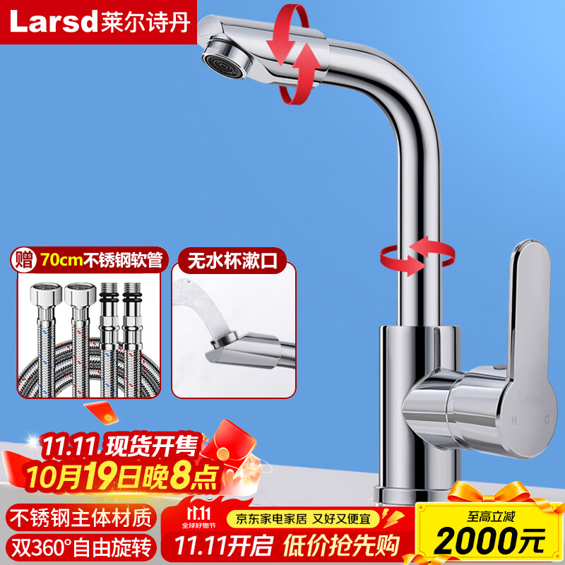 莱尔诗丹(Larsd)面盆水龙头 卫生间浴室柜冷热水龙头洗脸盆不锈钢双温龙头LD78011