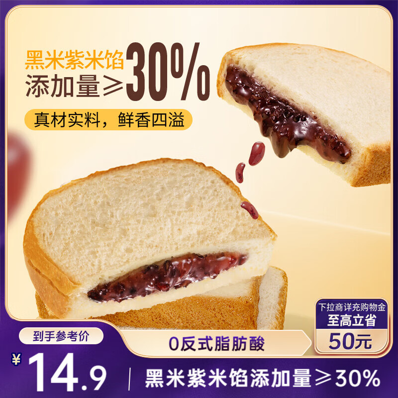 三只松鼠紫米夹心吐司500g 面包营养早餐学生整箱饱腹健康代餐
