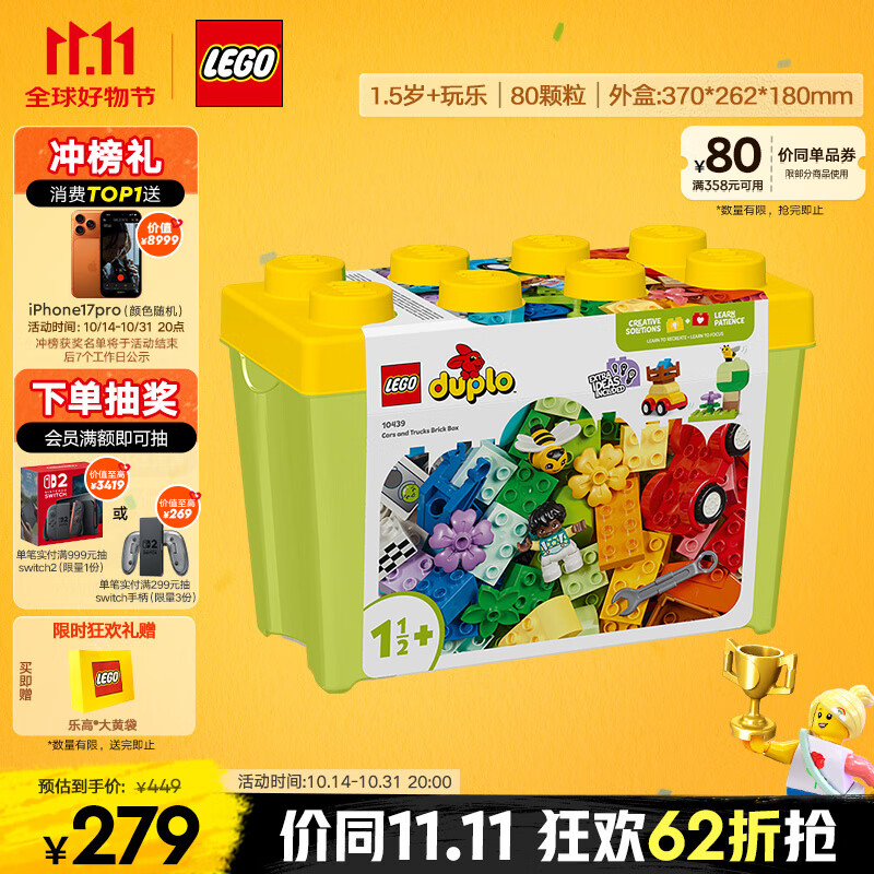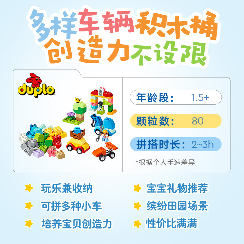 乐高(LEGO)积木拼装得宝10439 百变车辆积木桶男孩女孩儿童玩具生日礼物