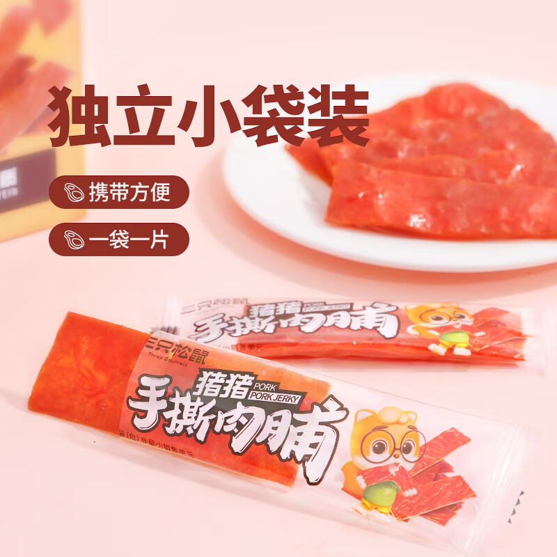 三只松鼠手撕肉脯原味400g量贩装休闲零食靖江风味高蛋白猪肉脯肉干肉脯