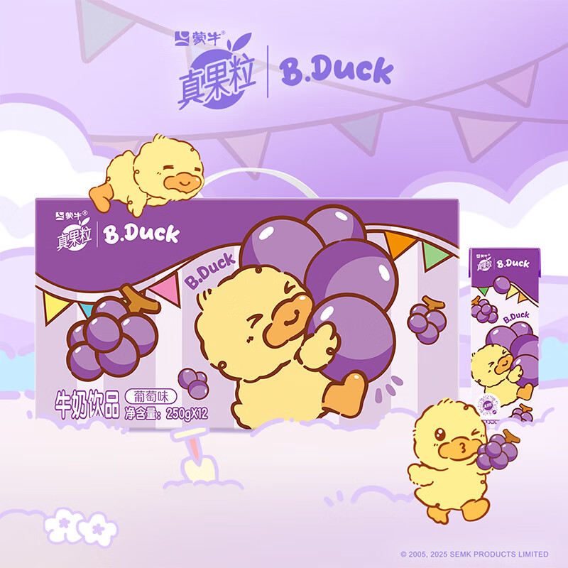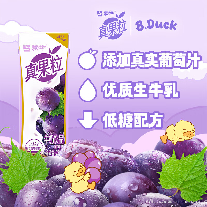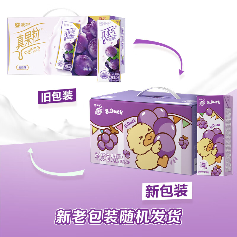 蒙牛真果粒葡萄味250g*12盒 小黄鸭IP定制装 礼盒新老包装 含乳饮料