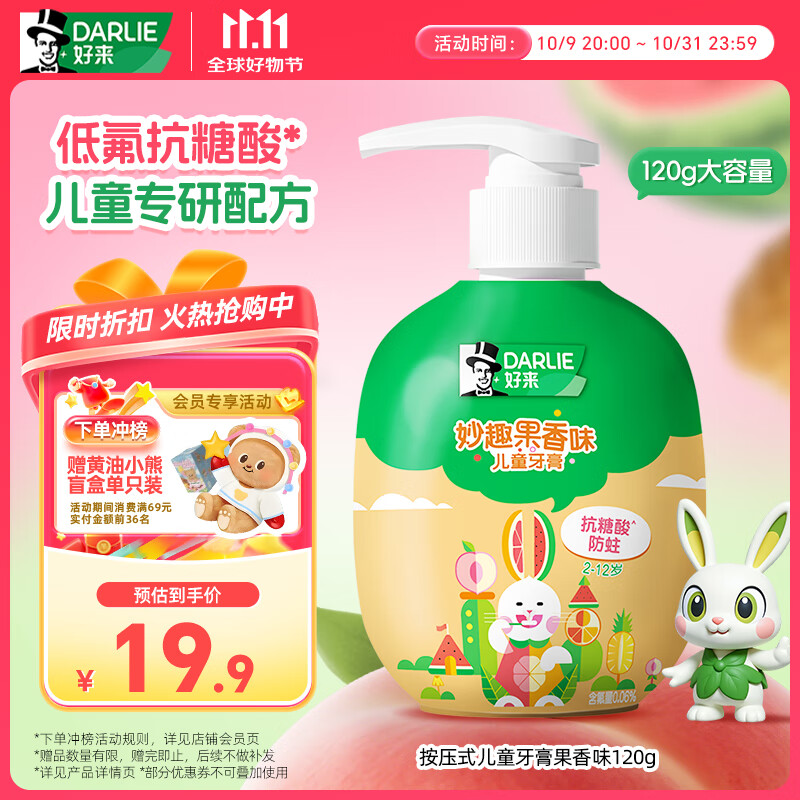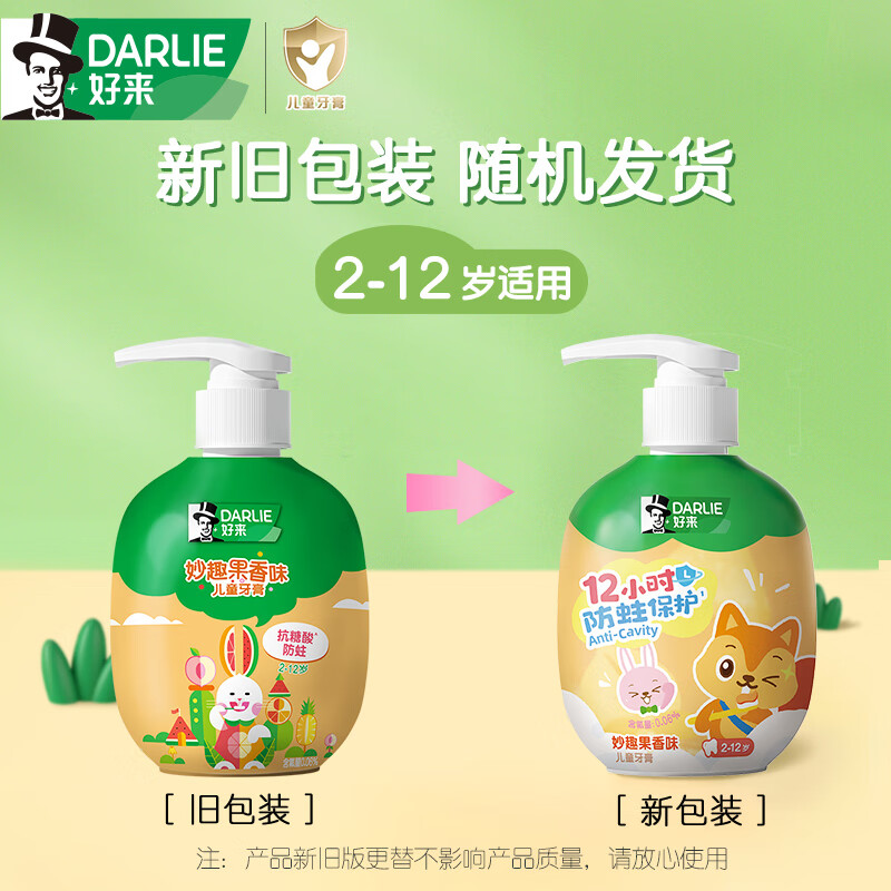 DARLIE好来(原黑人)按压式儿童牙膏2-3-6-12岁果香味120g抗糖酸防蛀含氟