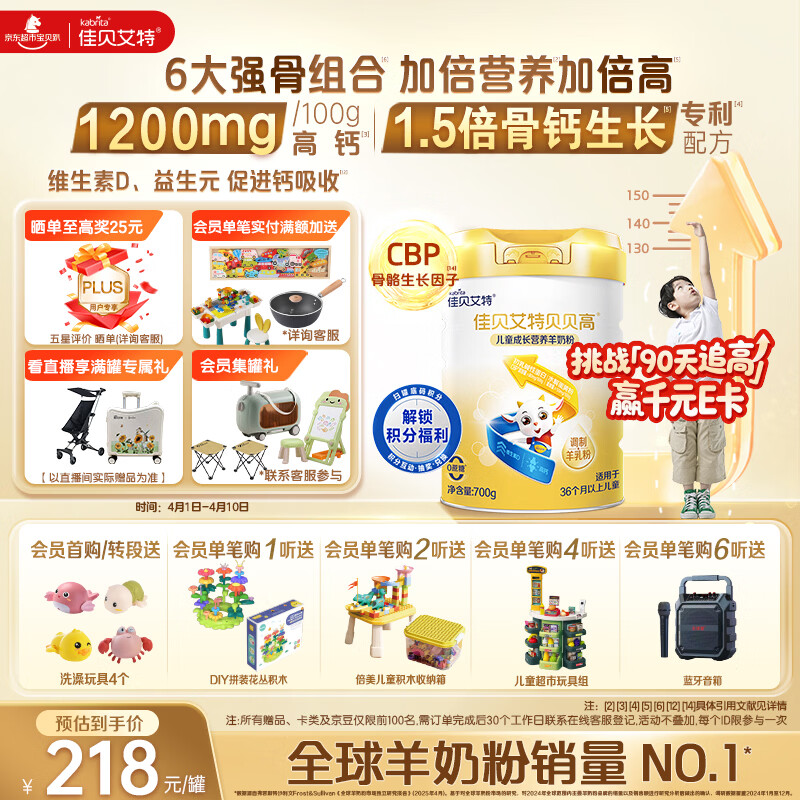 佳贝艾特(Kabrita)贝贝高高钙8倍CBP儿童成长羊奶粉4段(3岁以上)700克