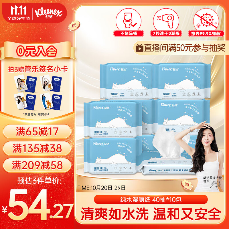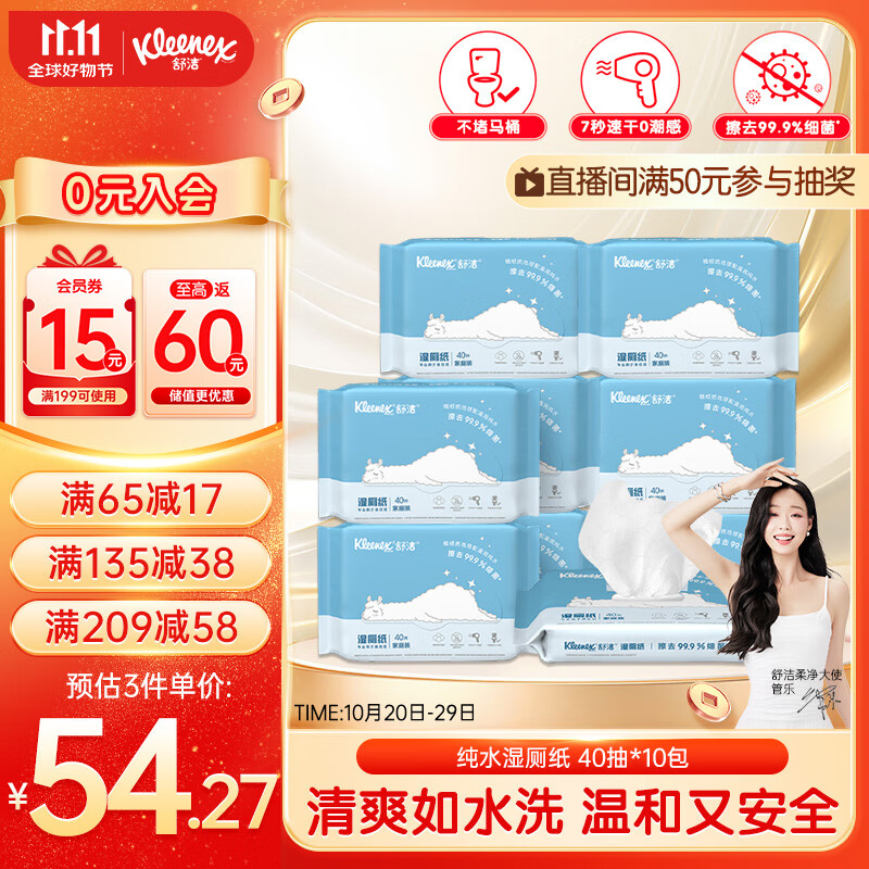 舒洁(Kleenex)湿厕纸40抽*10包家庭装厕纸湿厕纸纯水洁厕湿巾湿纸巾厕纸