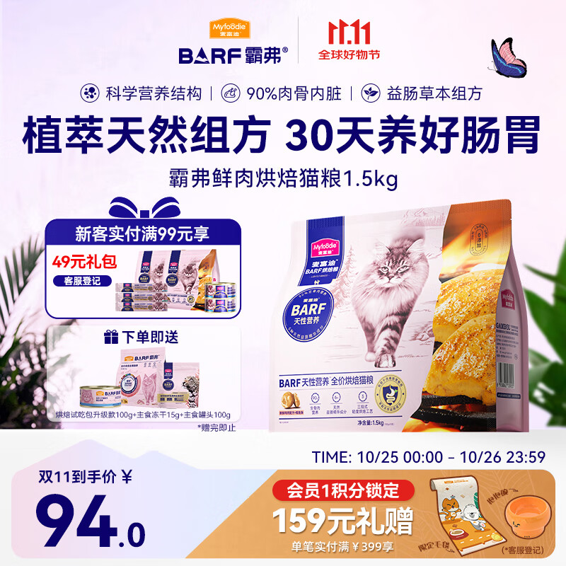 麦富迪猫粮 barf霸弗烘焙猫粮成幼猫粮生骨肉高蛋白养胃益肠鲜鸡肉1.5kg