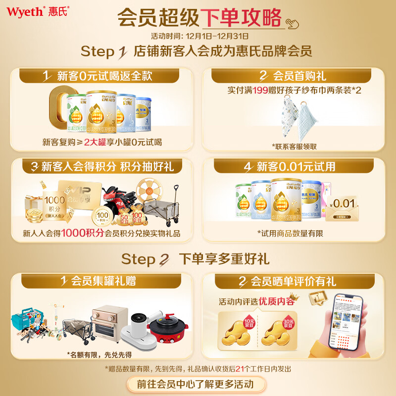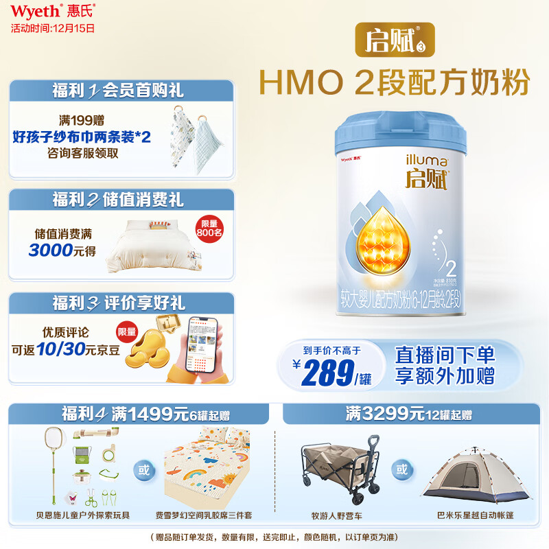 惠氏(Wyeth)启赋蓝钻HMO较大婴儿配方奶粉2段(6-12月)810g