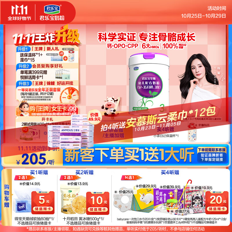 君乐宝(JUNLEBAO)至臻 A2奶牛奶粉3段(12-36月龄)听装800g 添加OPO+CPP