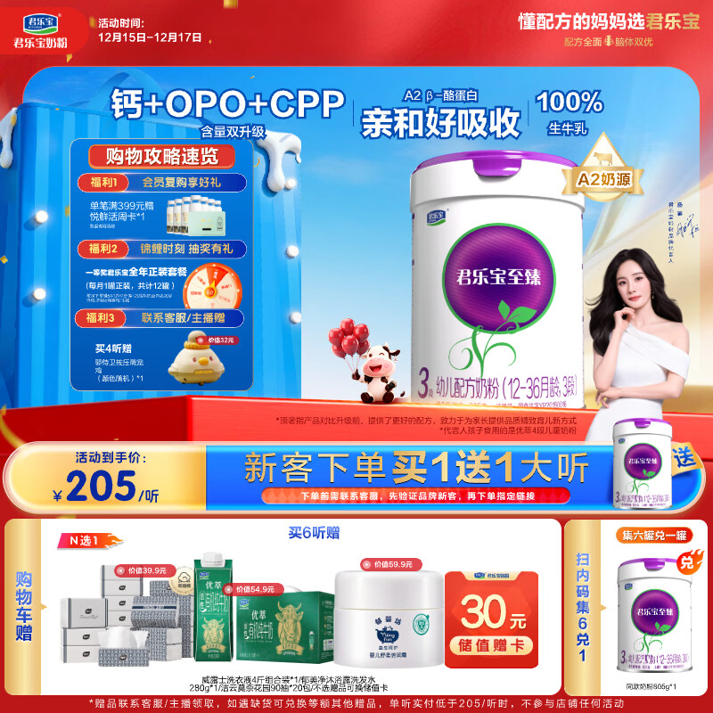君乐宝(JUNLEBAO)至臻 A2奶牛奶粉3段(12-36月龄)听装800g/805g随机发货 添加OPO