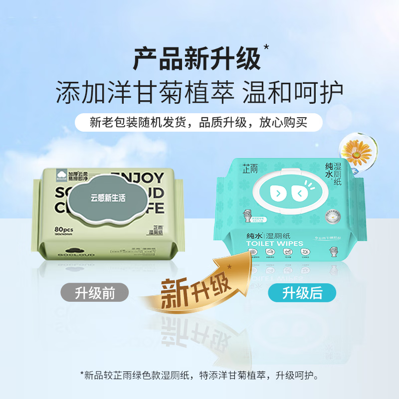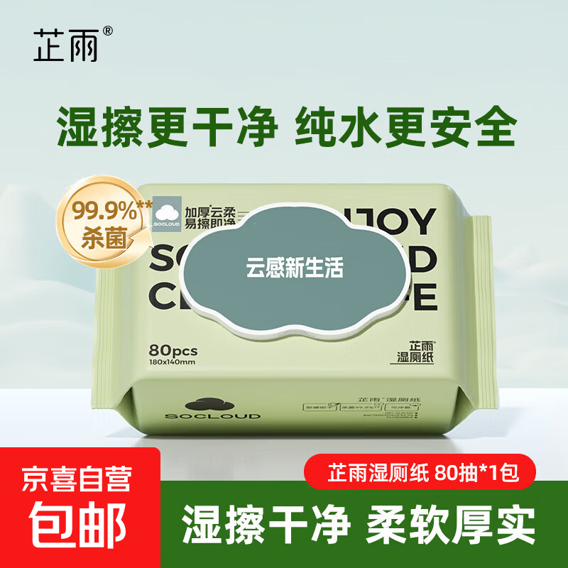 【加大加厚】湿厕纸芷雨可冲散99.9%杀菌便携装学生可用湿纸巾 80抽*1包 草本配方 温和洁净
