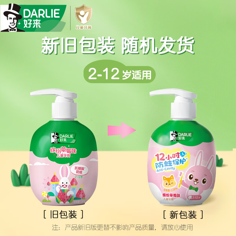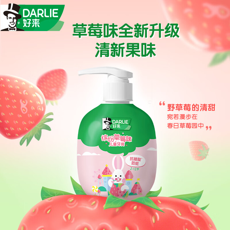 DARLIE好来(原黑人)按压式儿童牙膏2-3-6-12岁草莓味120g抗糖酸防蛀含氟