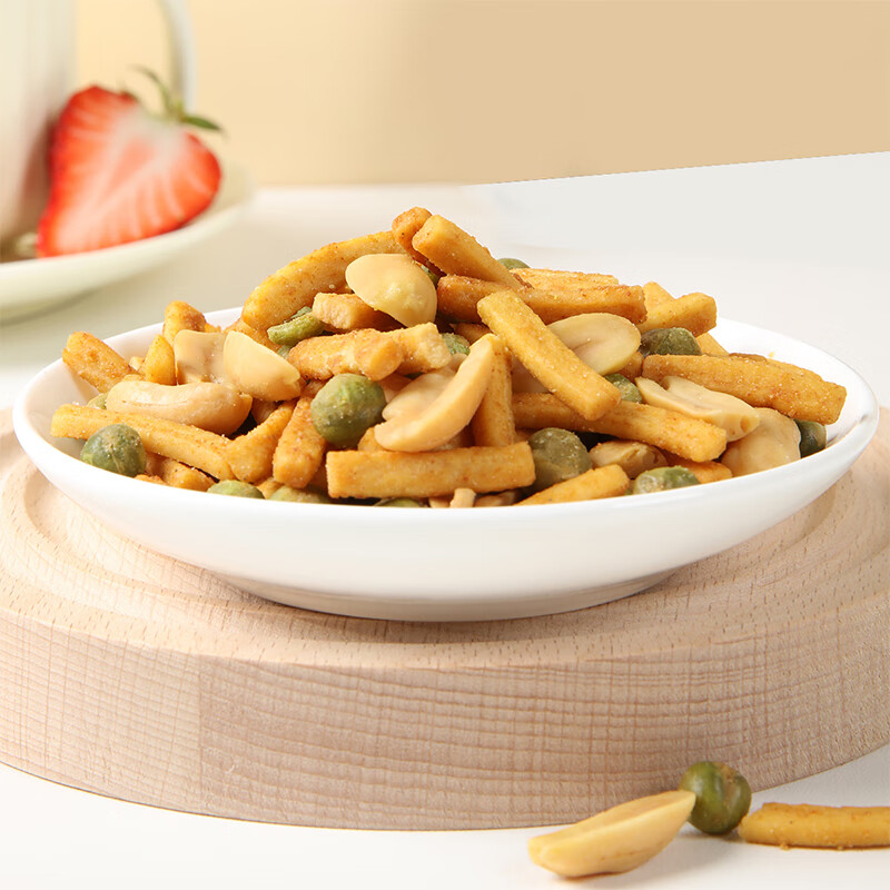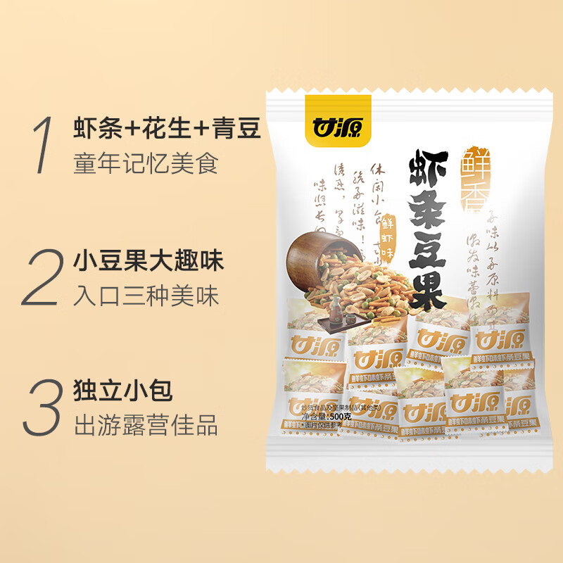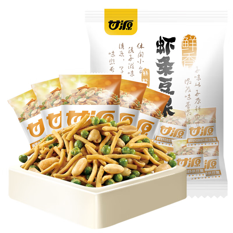 甘源鲜虾味虾条豆果500g休闲零食花生青豌豆儿童膨化食品追剧小零食