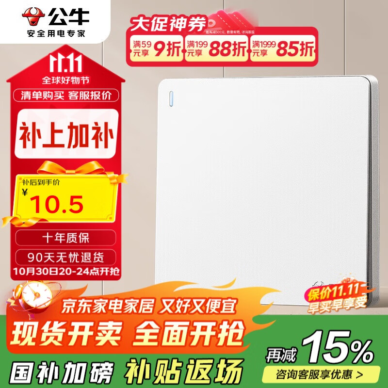 公牛(BULL)开关插座 G12系列一开双控开关墙壁大面板 G12K112暮雪白