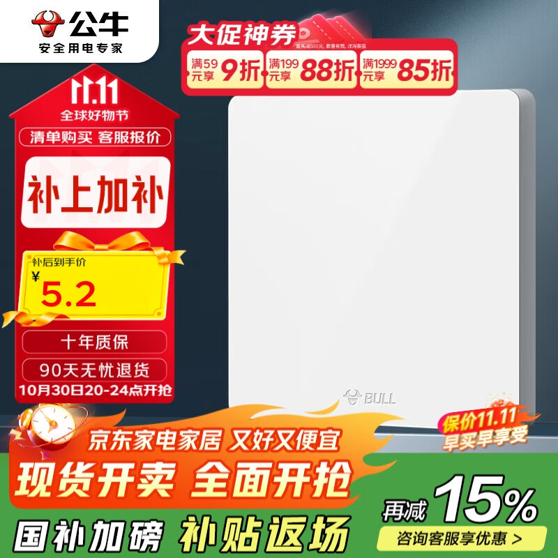 公牛(BULL)空白面板 G12系列 防溅盒面板白板86型面板 G12B101 象牙白