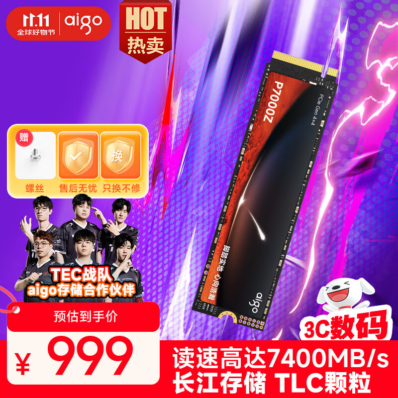 爱国者(aigo)2TB SSD固态硬盘 M.2接口 长江存储TLC颗粒 2280(NVMe)PCIe4.0 笔记本适用读速7400MB/s P7000Z