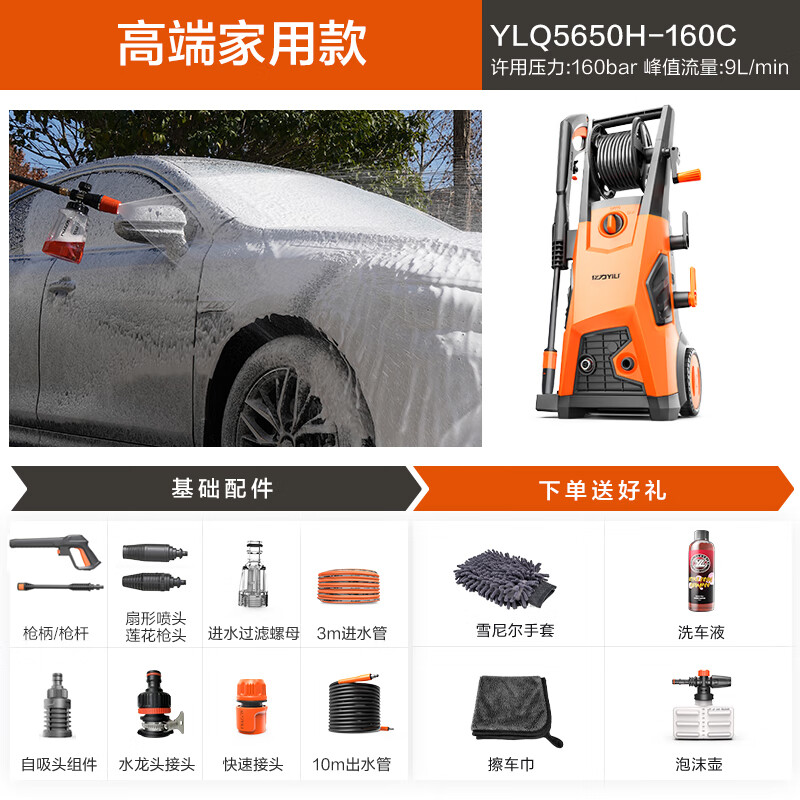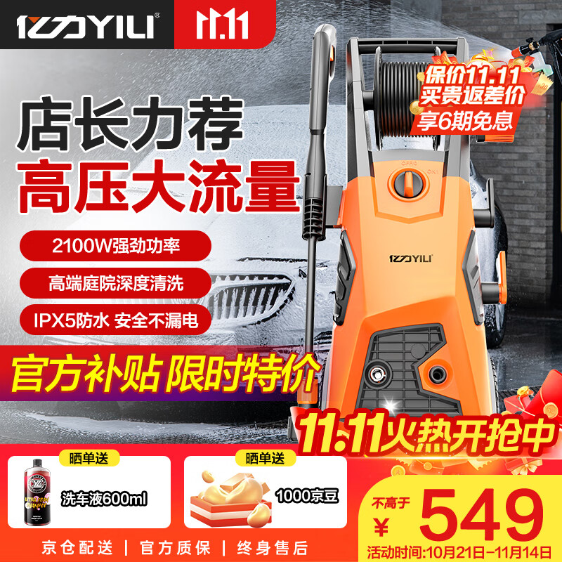 亿力高压洗车机2100W家用清洗机高压水枪家用洗车强力洗地卷轴款5650H