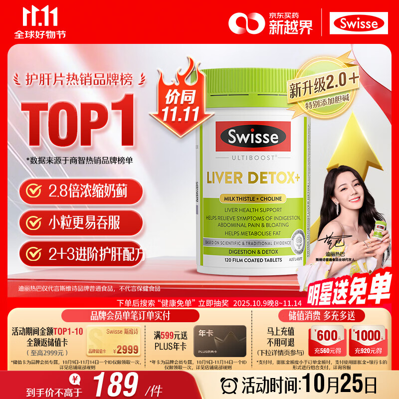 Swisse斯维诗 2代护肝片 胆碱奶蓟草片西蓝花籽姜黄 养肝去油120片/瓶