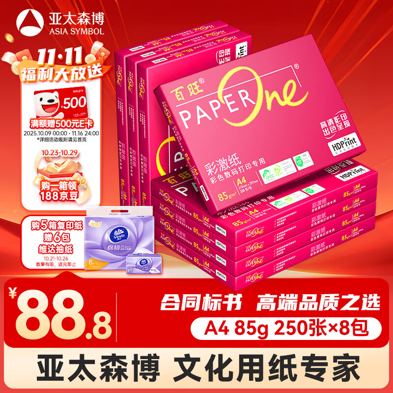 百旺至尊款红百旺 A4打印纸 85g250张*8包 复印纸 高清影印技术 碳中和认证 2000张【专业造纸厂牌】