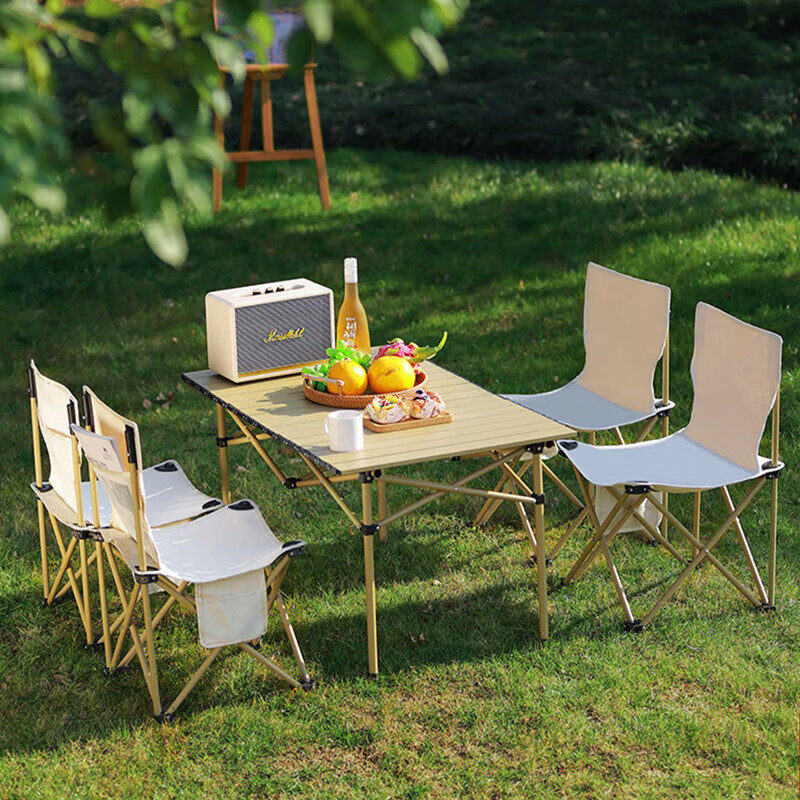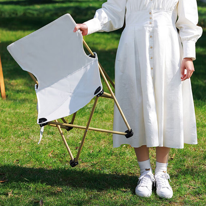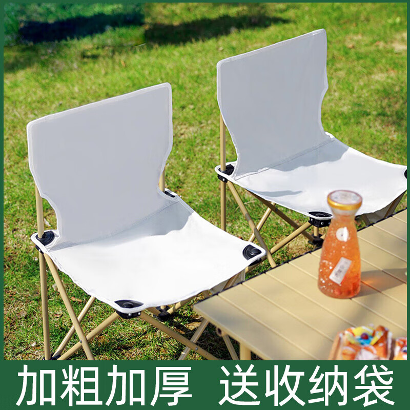 户外折叠桌椅便携式蛋卷桌野餐烧烤露营桌折叠椅 米白色-小号折叠椅【1把装】