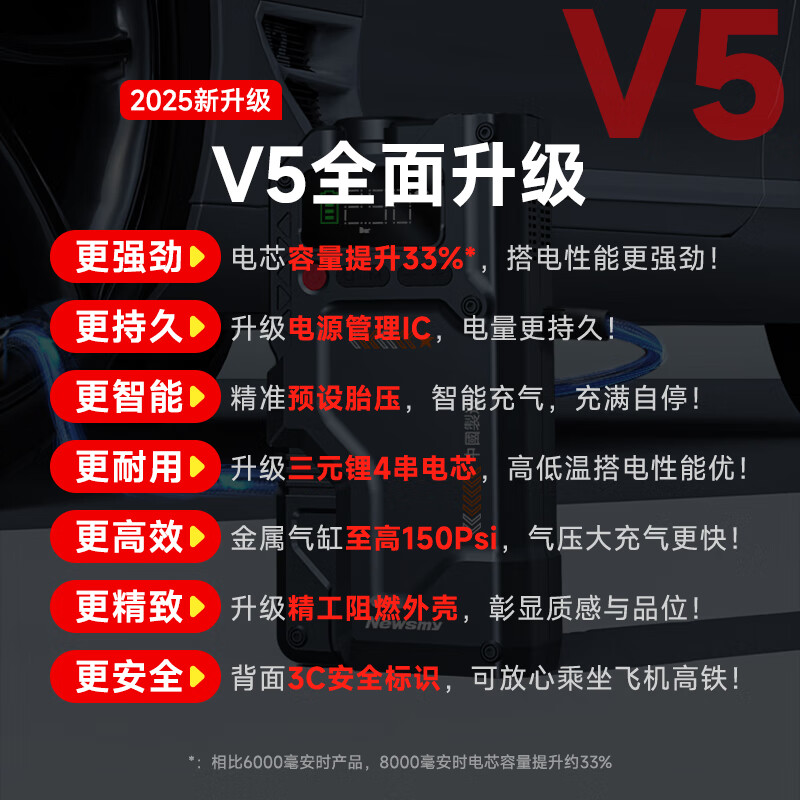纽曼(Newsmy)【3C认证】搭电宝汽车应急启动电源充气泵一体机户外电源车载充气泵充电宝移动电源12v打火神器V5