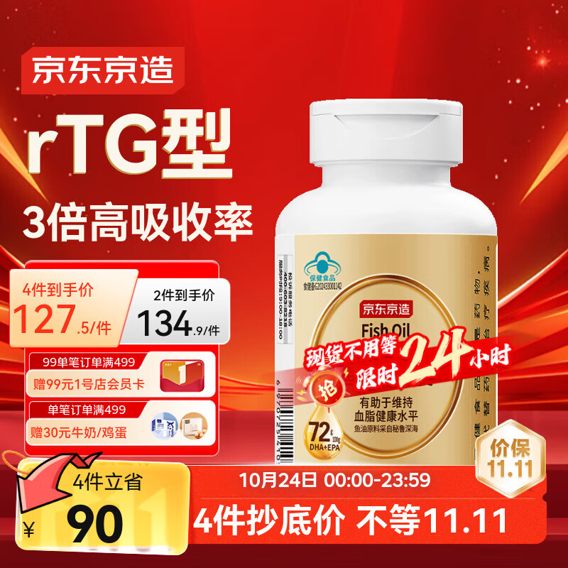 京东京造4倍rTG深海鱼油软胶囊150粒omega-3DHAEPA 辅助降血脂非鱼肝油