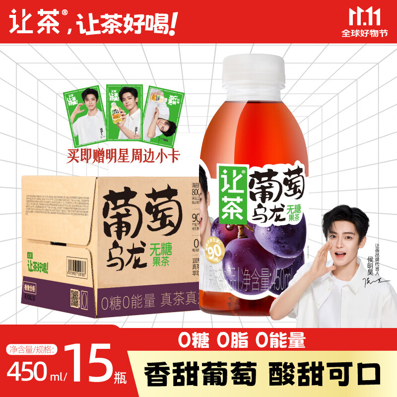 让茶无糖葡萄乌龙果茶饮料0糖0脂肪0能量维C解渴饮品450ml*15瓶整箱装