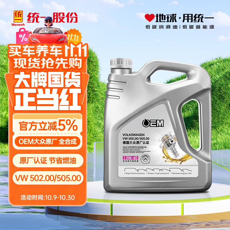 统一(Monarch)大众原厂认证 机油全合成机油汽机油 5W-40 SN级 4L 汽车保养