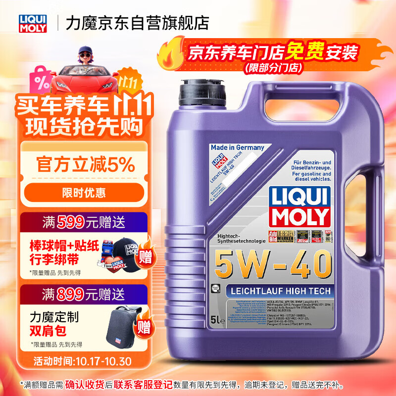 力魔(LIQUI MOLY)德国原装进口 高科技雷神机油 5W-40 SP A3/B4级 5L 汽车用品