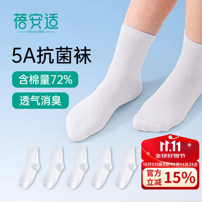 蓓安适一次性袜子女抗菌消臭棉袜旅行四季吸汗透气运动袜 白色中筒5双装