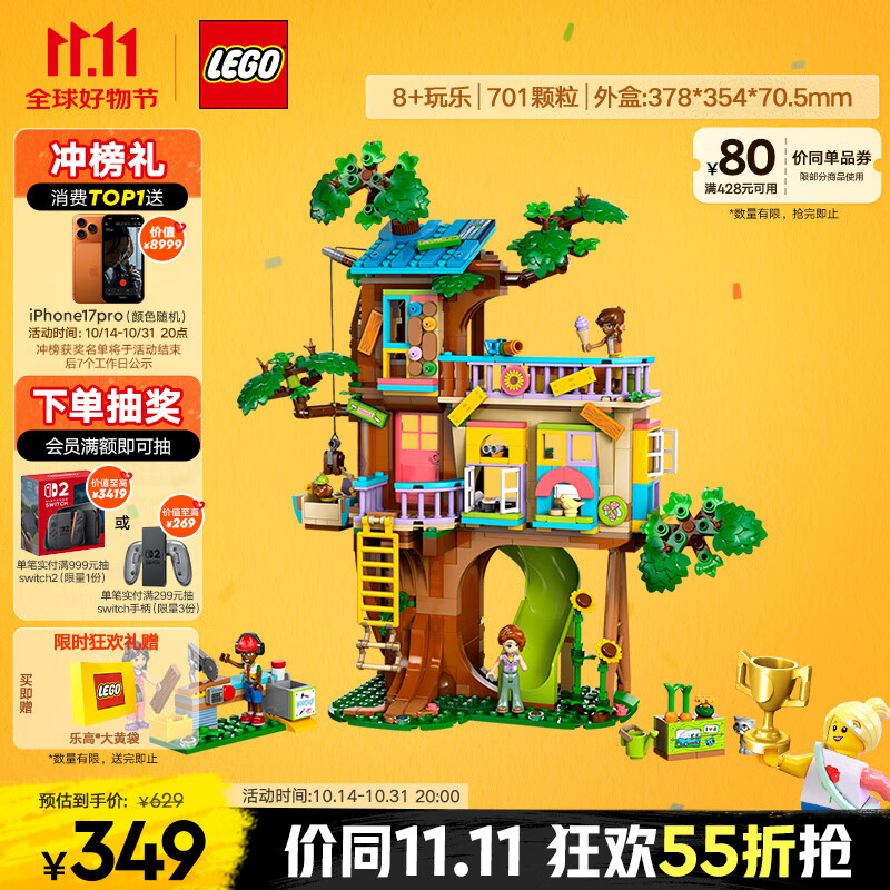 乐高(LEGO)积木拼装好朋友42652 欢聚友谊树屋女孩儿童玩具生日礼物