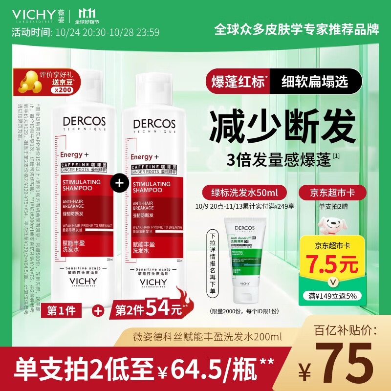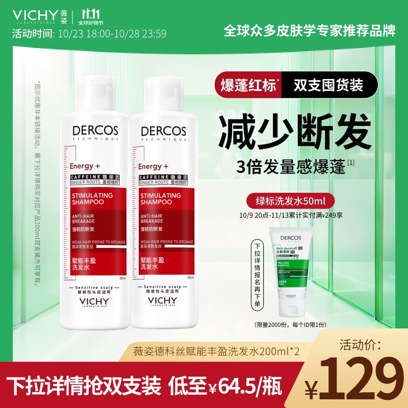 薇姿(VICHY)爆蓬红标洗发水丰盈蓬松无硅油生姜洗发水 强韧发根改善细软塌