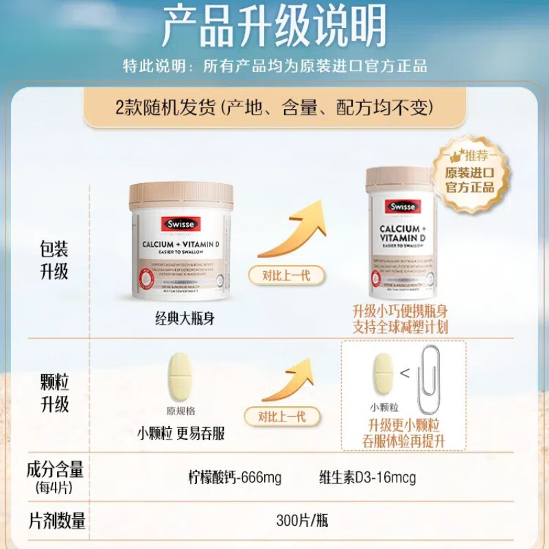 Swisse斯维诗钙+维生素D迷你钙片中老年成人孕妇补钙 柠檬酸钙300片*2瓶
