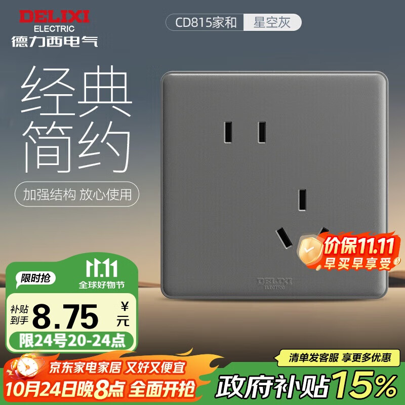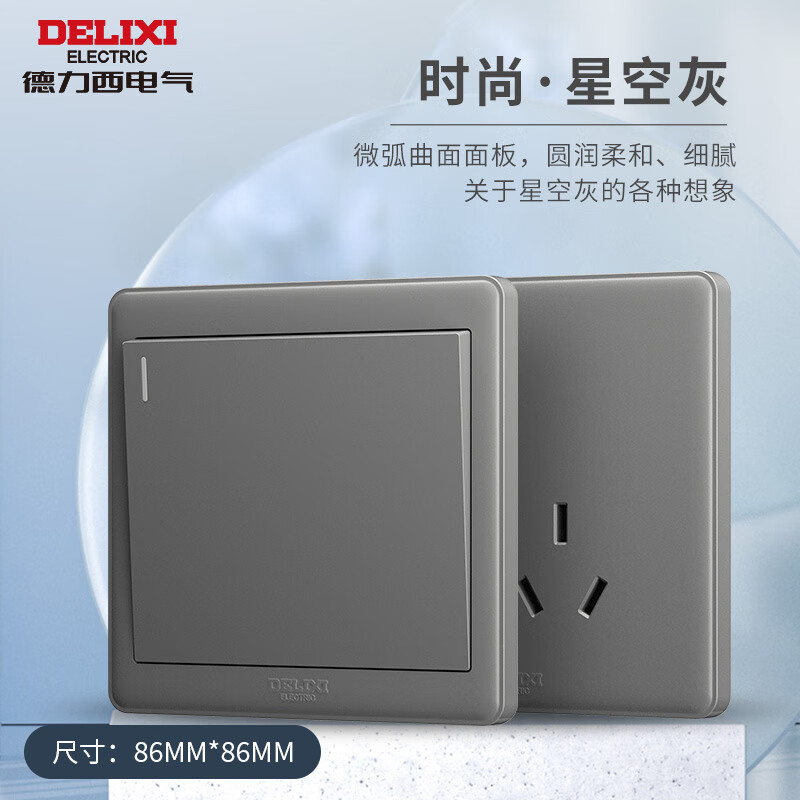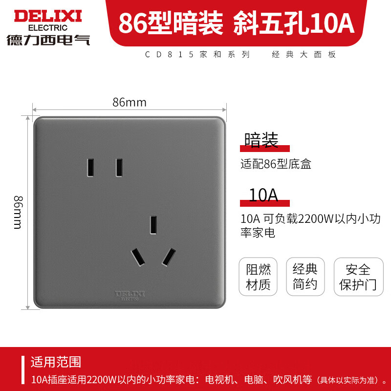 德力西(DELIXI)开关插座面板 CD815系列 10A斜五孔插座星空灰