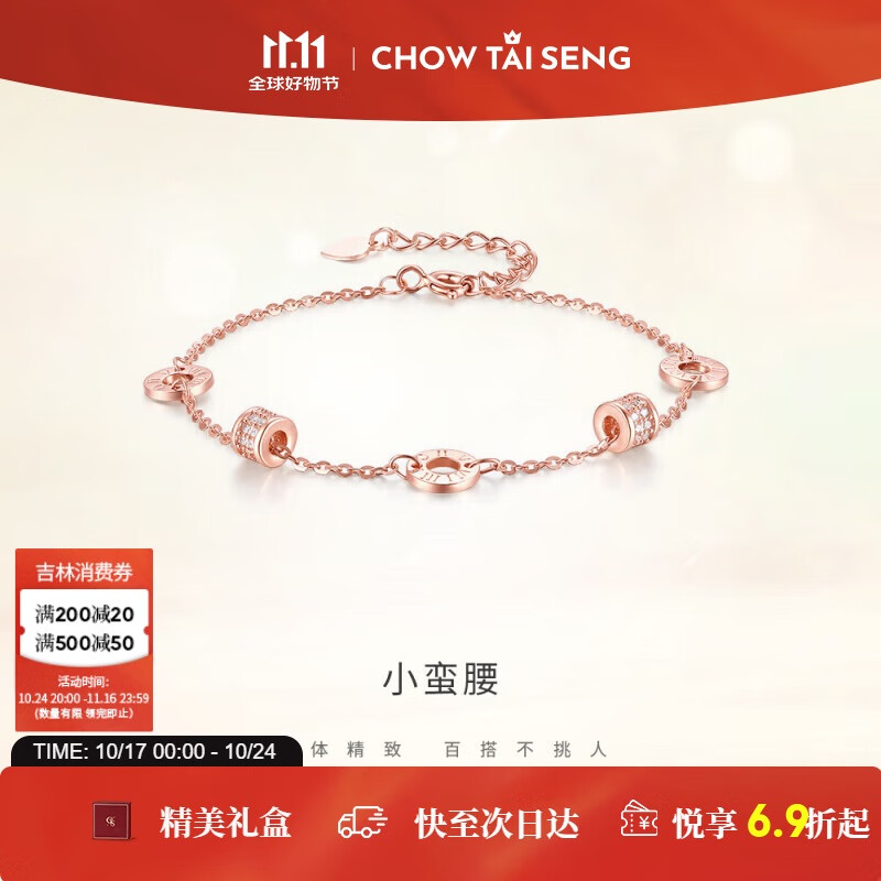 周大生小蛮腰纯银手链女轻奢小众玫瑰金色手饰生日礼物送女友
