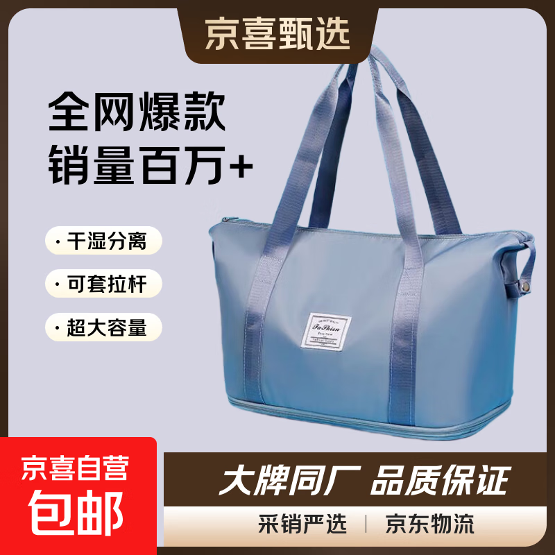 【新秀丽制造商】轻便女士防水旅行包时尚瑜伽包可折叠待产包 蓝色