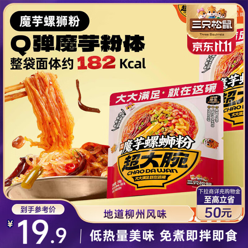 三只松鼠超大腕魔芋螺蛳粉218g*5袋 即食宵夜柳州螺蛳粉酸辣粉方便速食