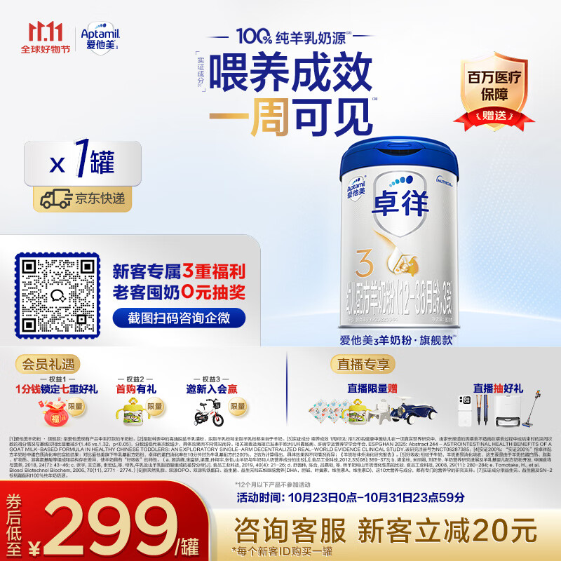 爱他美(Aptamil)卓徉幼儿配方羊奶粉3段(12-36月龄)800g自护吸收双突破