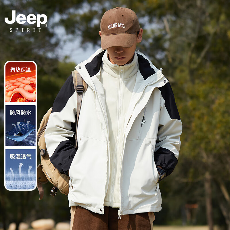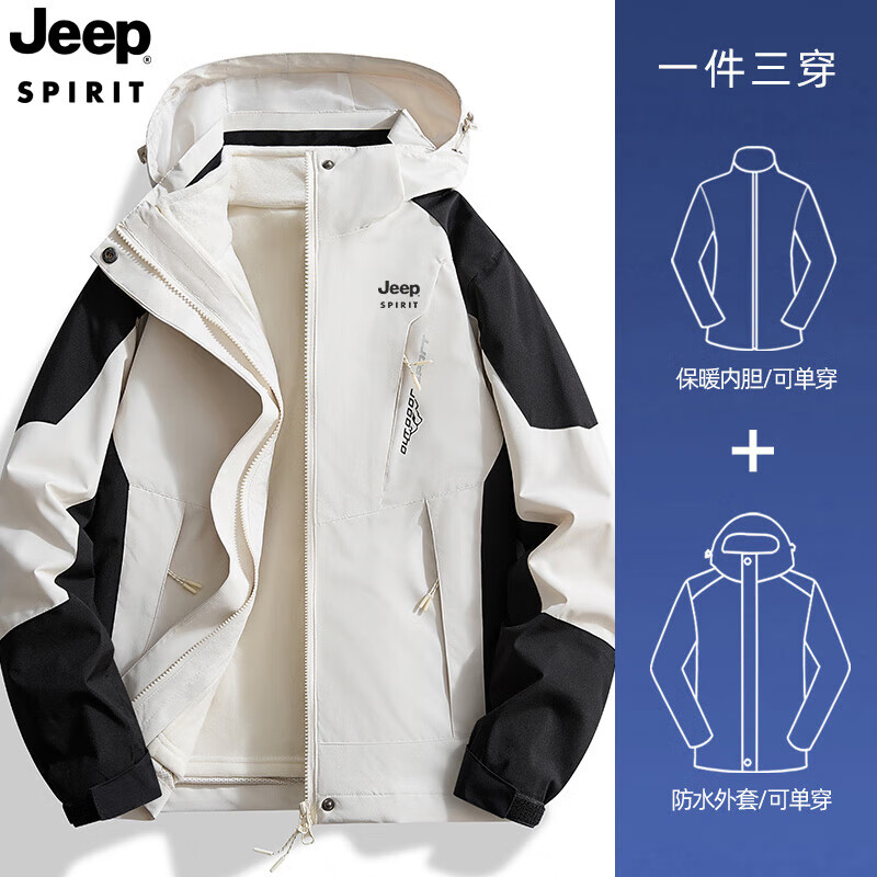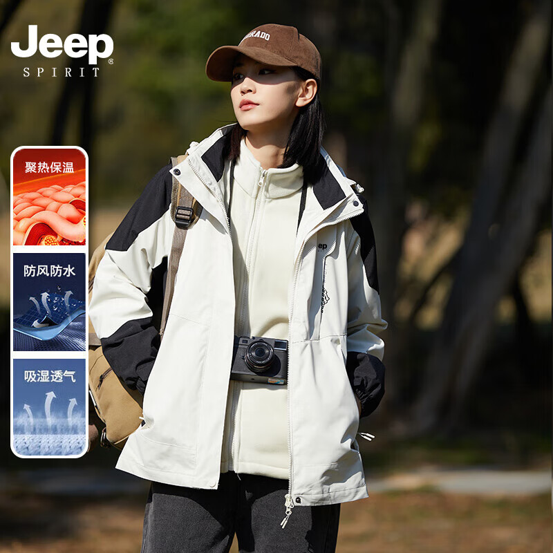 吉普(JEEP)冲锋夹克衣男女同款春秋季外套户外防风衣保暖冲锋外套