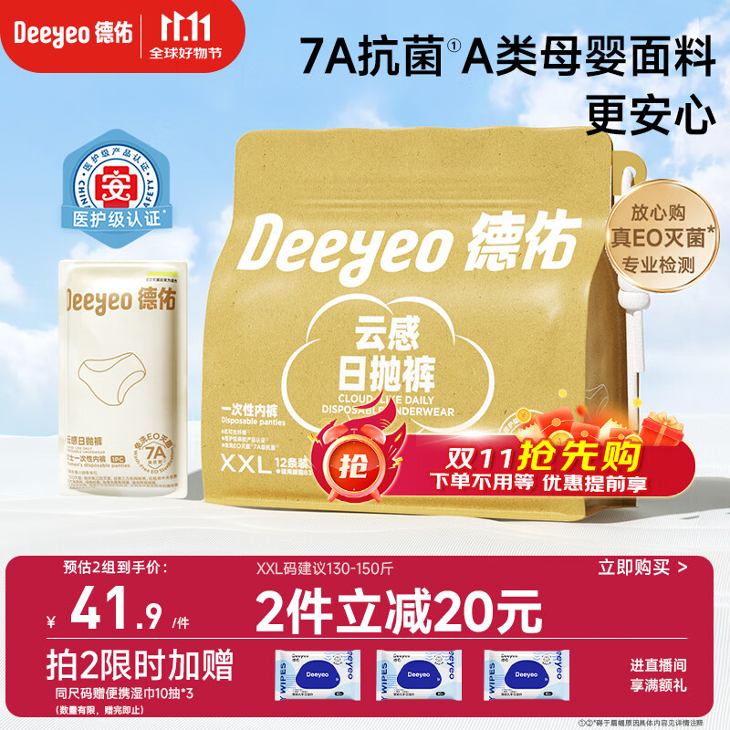德佑一次性内裤女孕产妇出差生理期内裤7A抑菌XXL码12条【 安全灭菌】