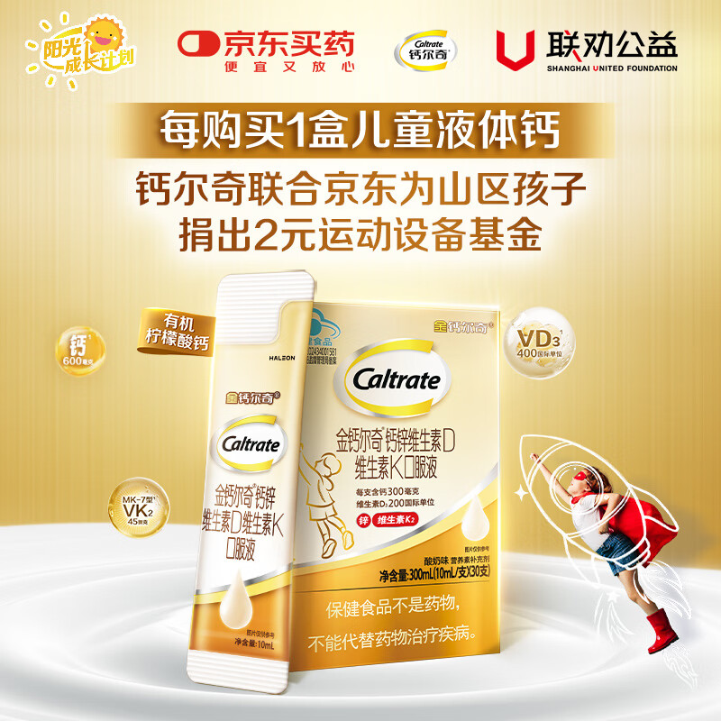 钙尔奇儿童液体钙锌维生素DK 4岁以上青少年助成长 VK2补钙 60支