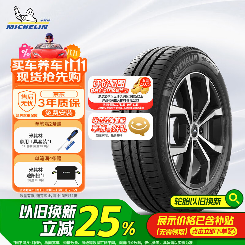 米其林(MICHELIN)汽车轮胎 195/65R15 91V 耐越 ENERGY MILE 适配卡罗拉/朗逸/雷凌