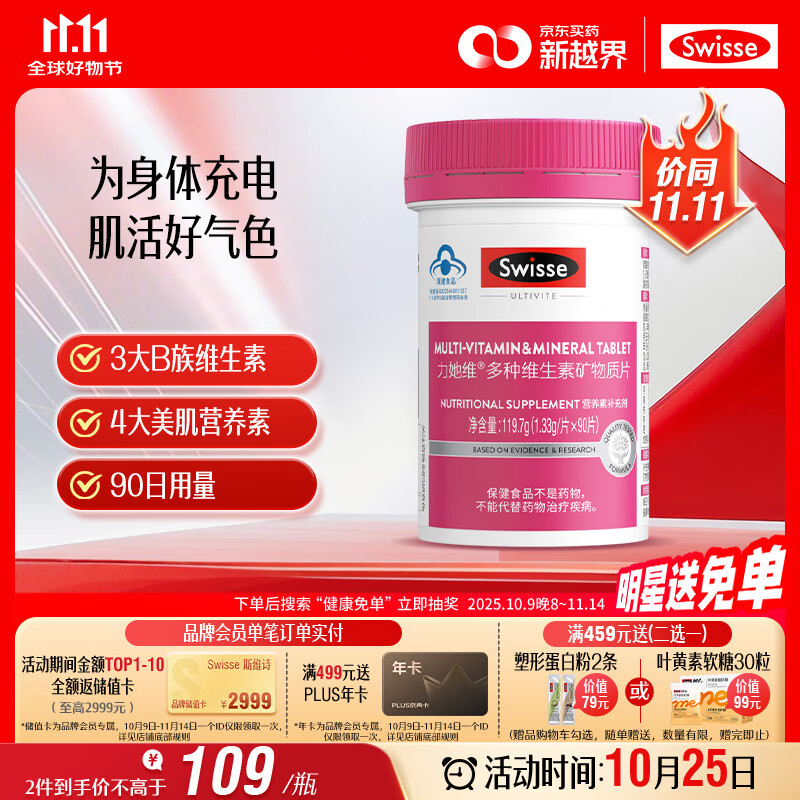 Swisse斯维诗力她维女士复合维生素矿物质片 含维生素B族维D维E维A 90片