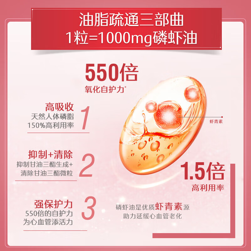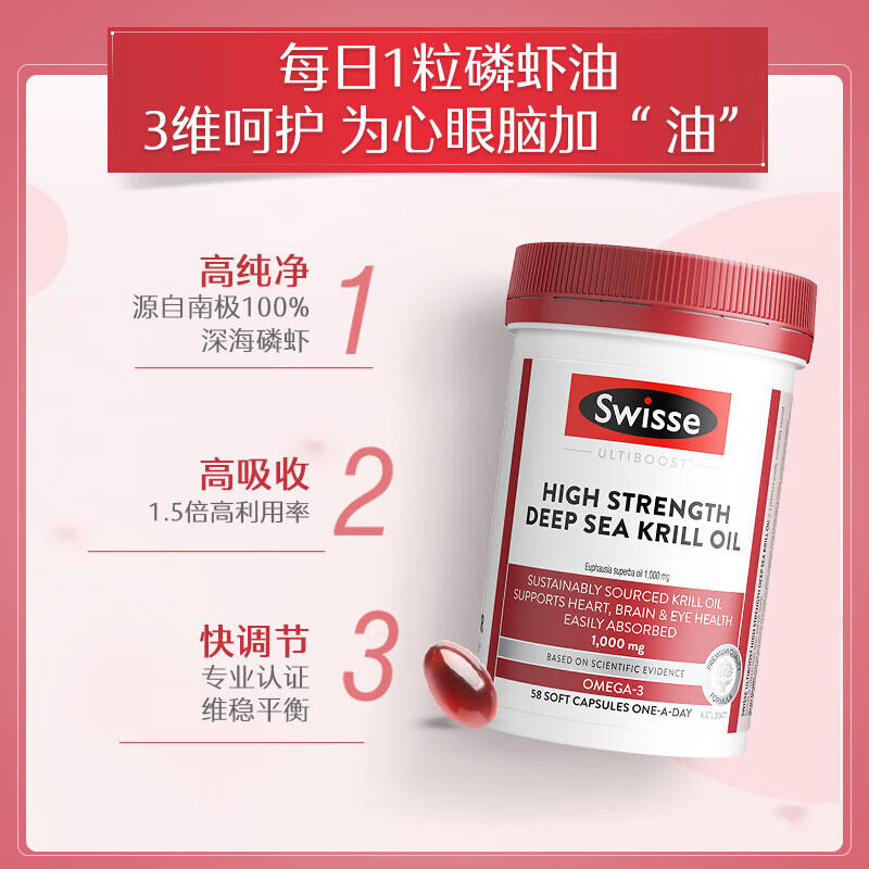 Swisse斯维诗 高浓度深海磷虾油1000mg DHA+EPA 呵护心血管眼脑 58粒/瓶