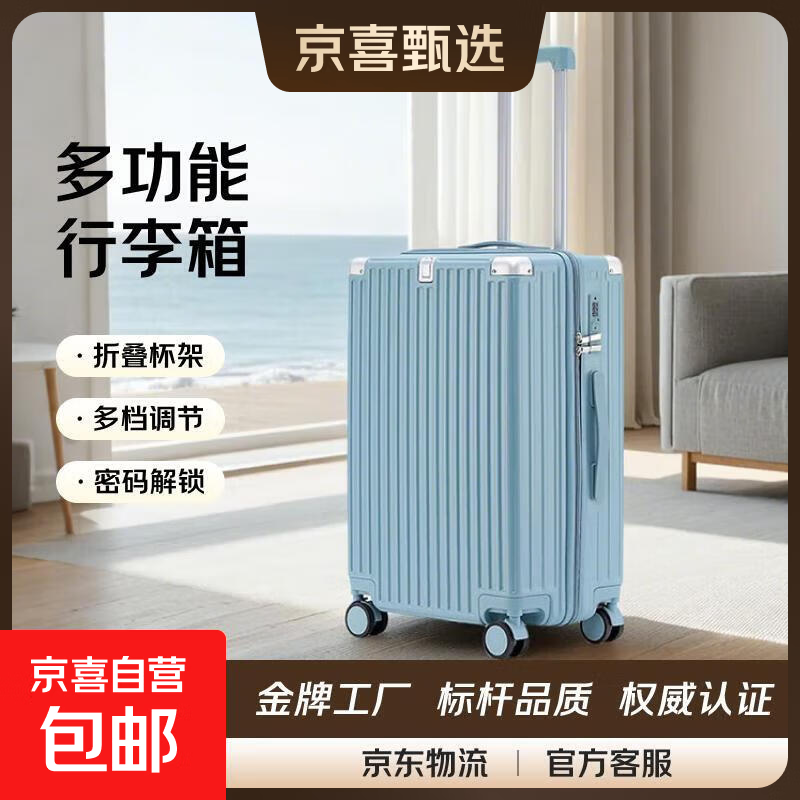 行李箱男拉杆箱多功能女学生大容量旅行箱密码箱皮箱子登机箱20寸 浅灰蓝拉链 26英寸